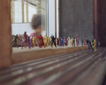 4-Kanal-Videoinstallation hinter Glas DV 3-22 min, s/w und Farbe, Ton. 4 Monitore, 4 Kopfhörer (in ihrer Zugehörigkeit nicht gekennzeichnet), 113 Kunststofffiguren, Realräume mit Originalausstattung (Eingangshalle, genutzt; Holzwerkstatt, ungenutzt). Hochschule für Film und Fernsehen "Konrad Wolf", Potsdam-Babelsberg, 2004